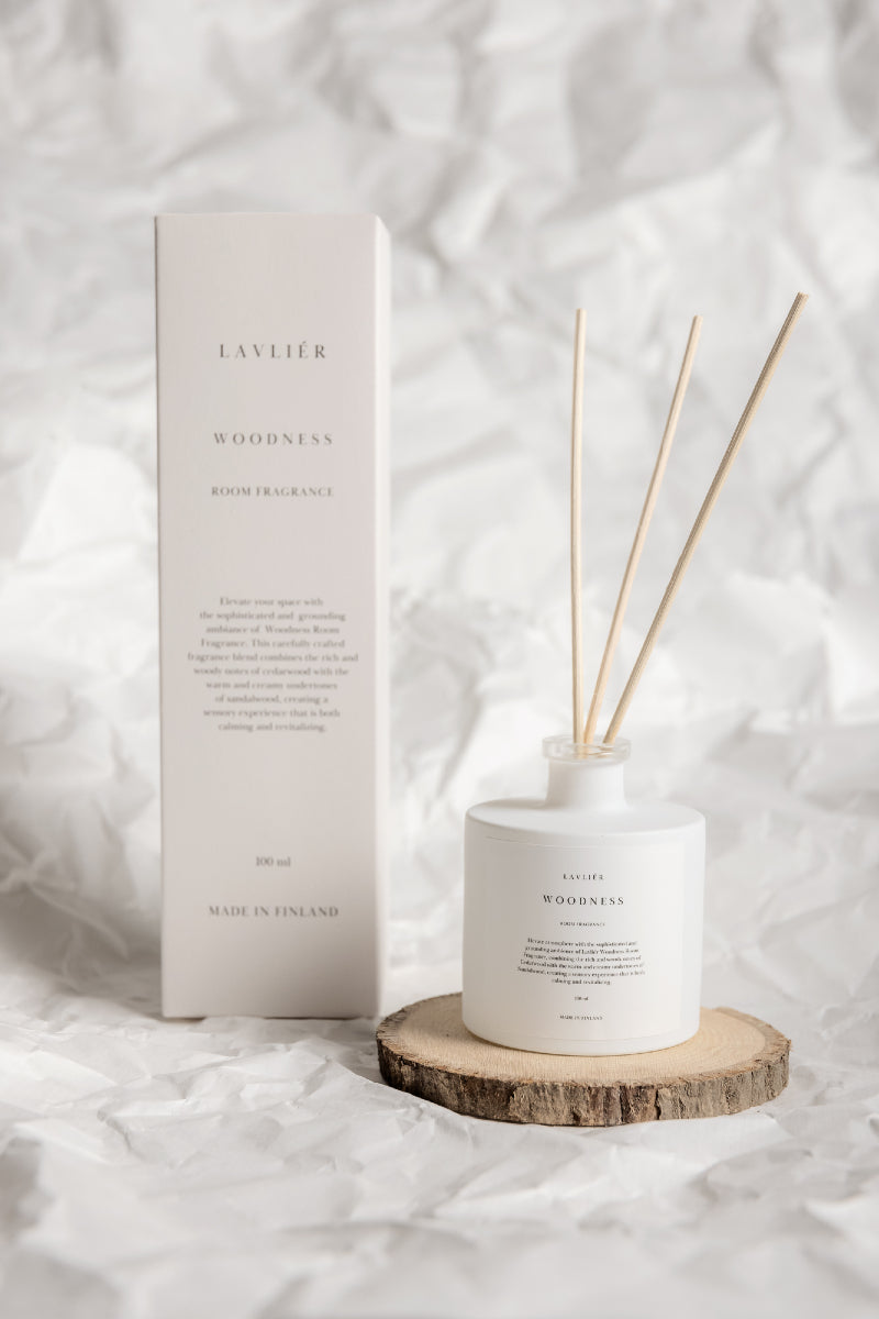 Laadukkaista tuoksuöljyistä valmistettu Lavliér Woodness-huonetuoksu vapauttaa tuoksua hienovaraisesti sekä muuttaa tilan rentoutumisen paratiisiksi. Huonetuoksun minimalistinen muotoilu tuo sisustukseen ripauksen hienostuneisuutta, mikä tekee siitä paitsi aistillisen nautinnon myös tyylikkään lisän mihin tahansa huoneeseen.