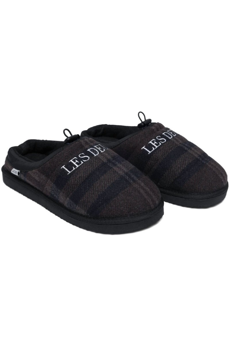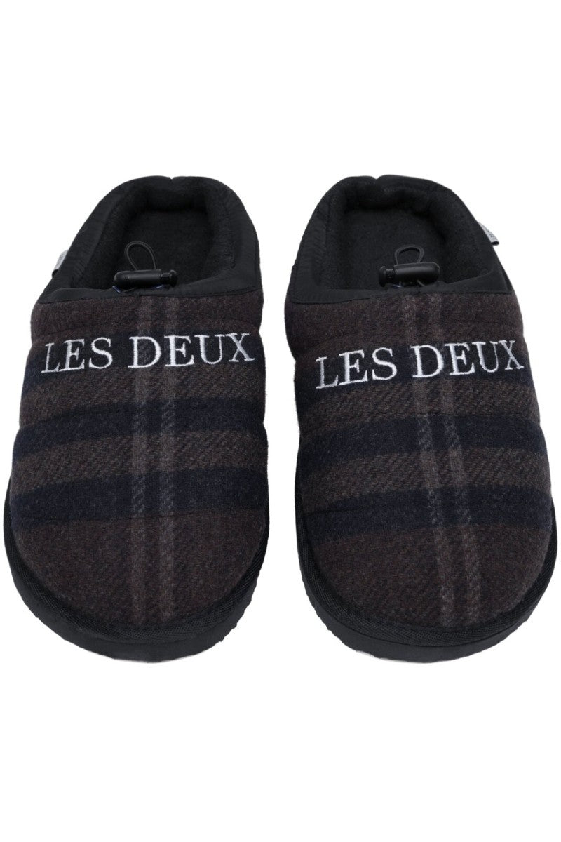 Les Deux Trey Wool check slipper - coffee brown/dark grey