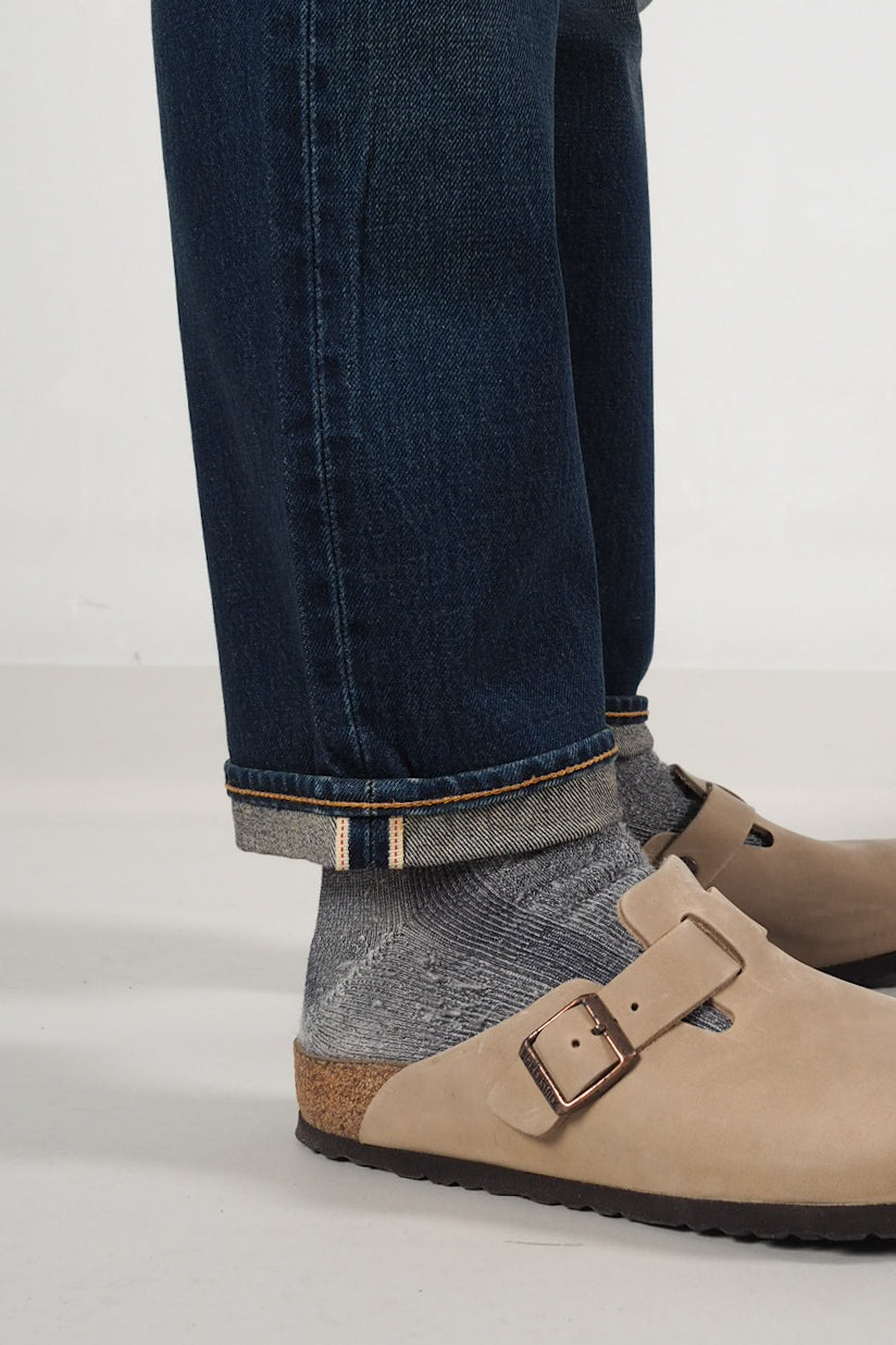 Selvedge-malli on valmistettu perinteisellä sukkulakangaspuulla kudotusta selvedge-denimistä, joka lisää kestävyyttä ja viimeistelee reunat tyylikkäällä, tunnistettavalla reunasaumalla.