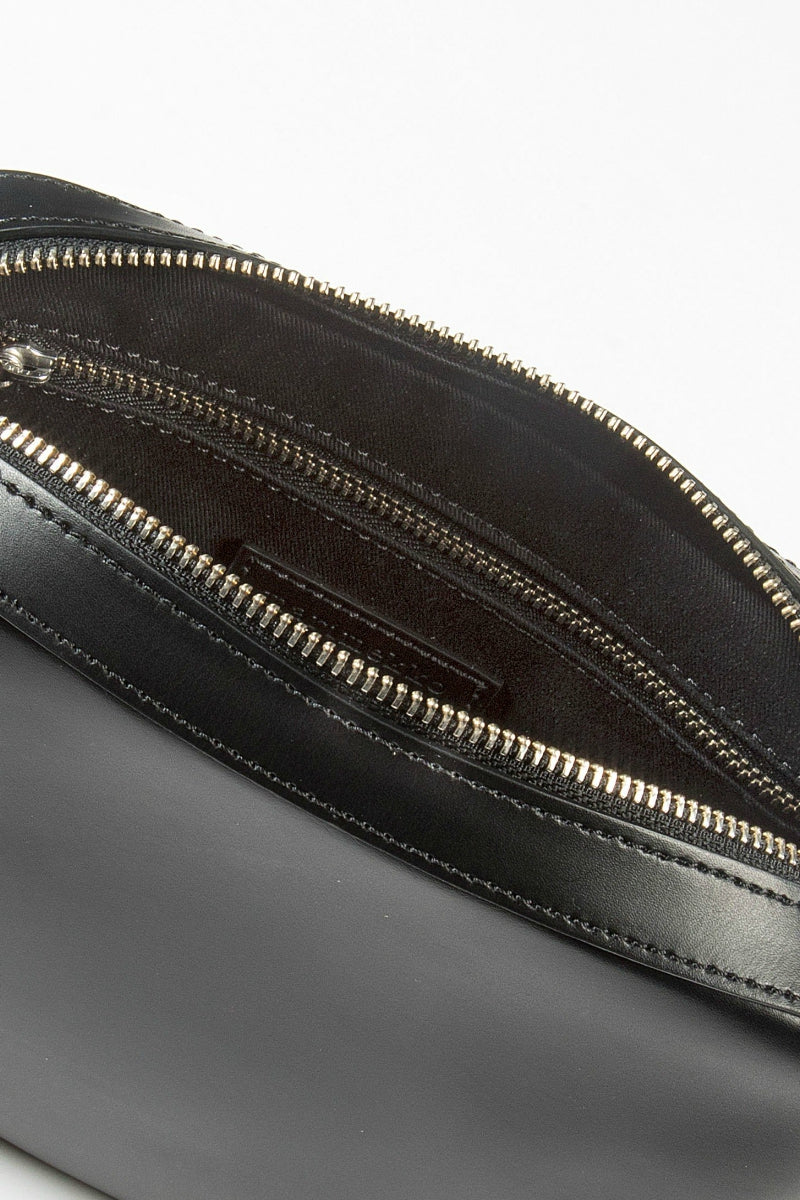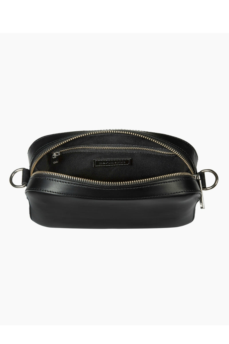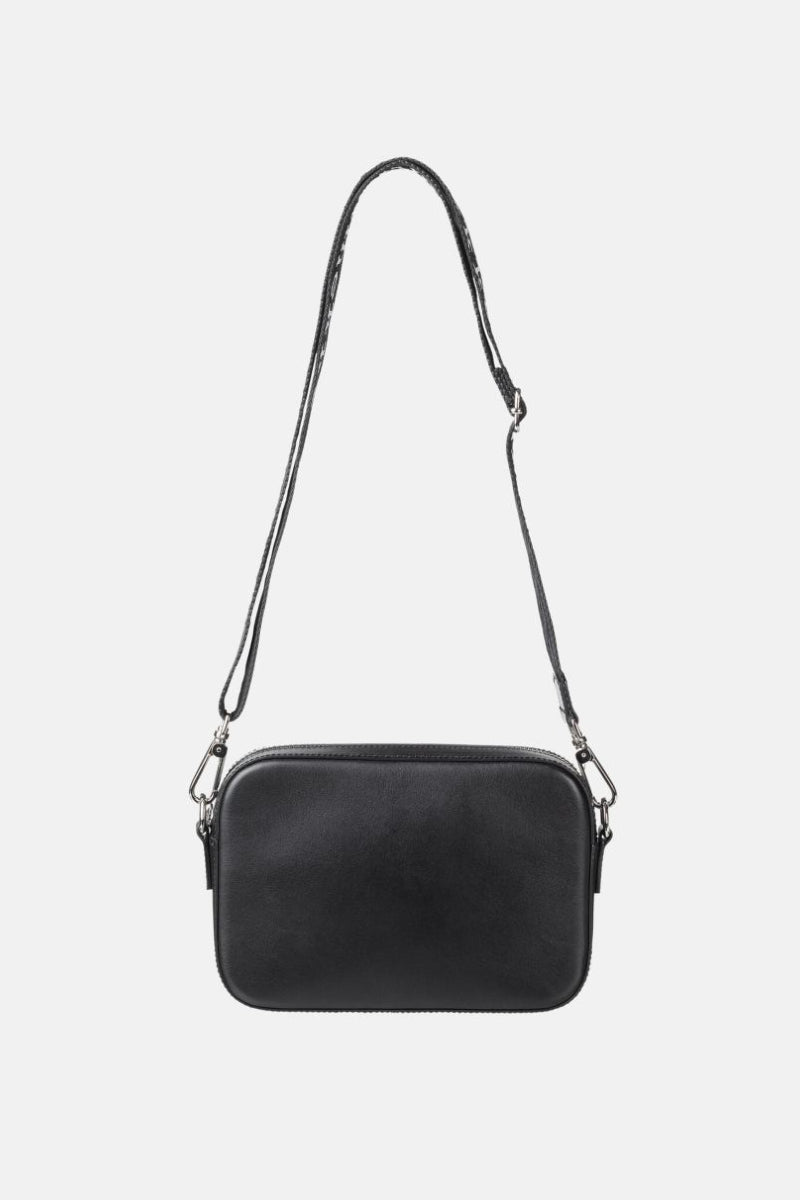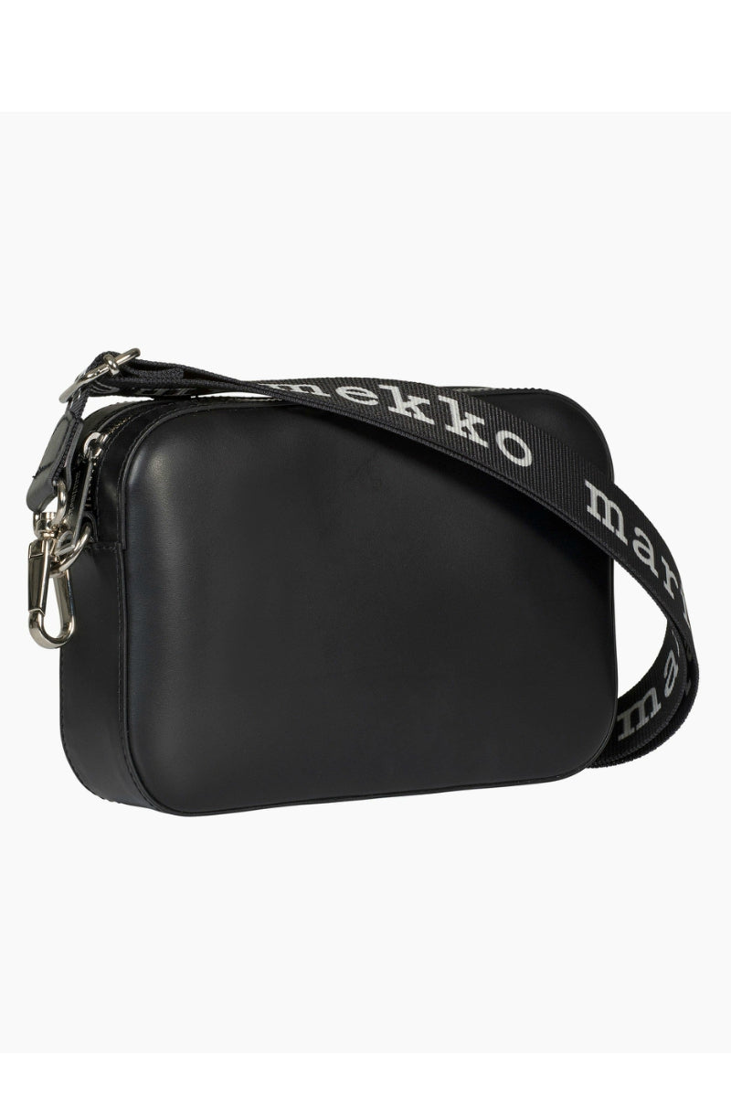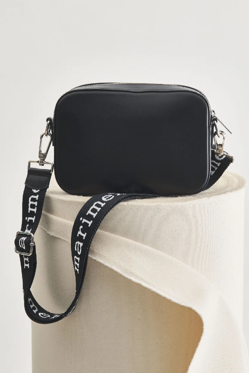 Italialaisesta nahasta valmistettu ikoninen Marimekon "kameralaukku" näyttävällä Marimekko-logoa toistavalla hihnalla. Laukussa on vetoketjusuljenta, se on vuoritettu ja sisäpuolella on vetoketjutasku.