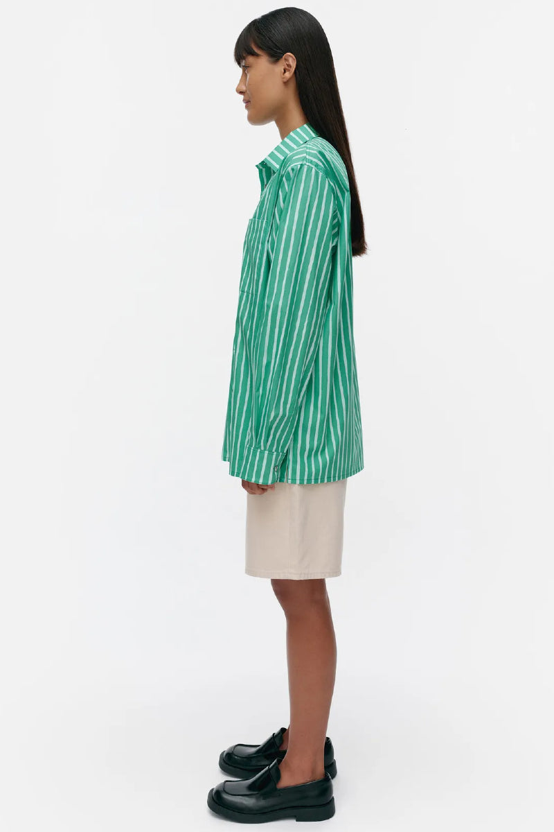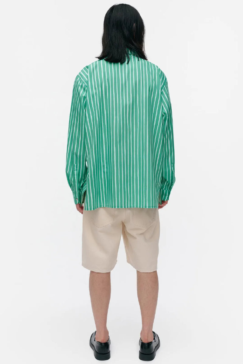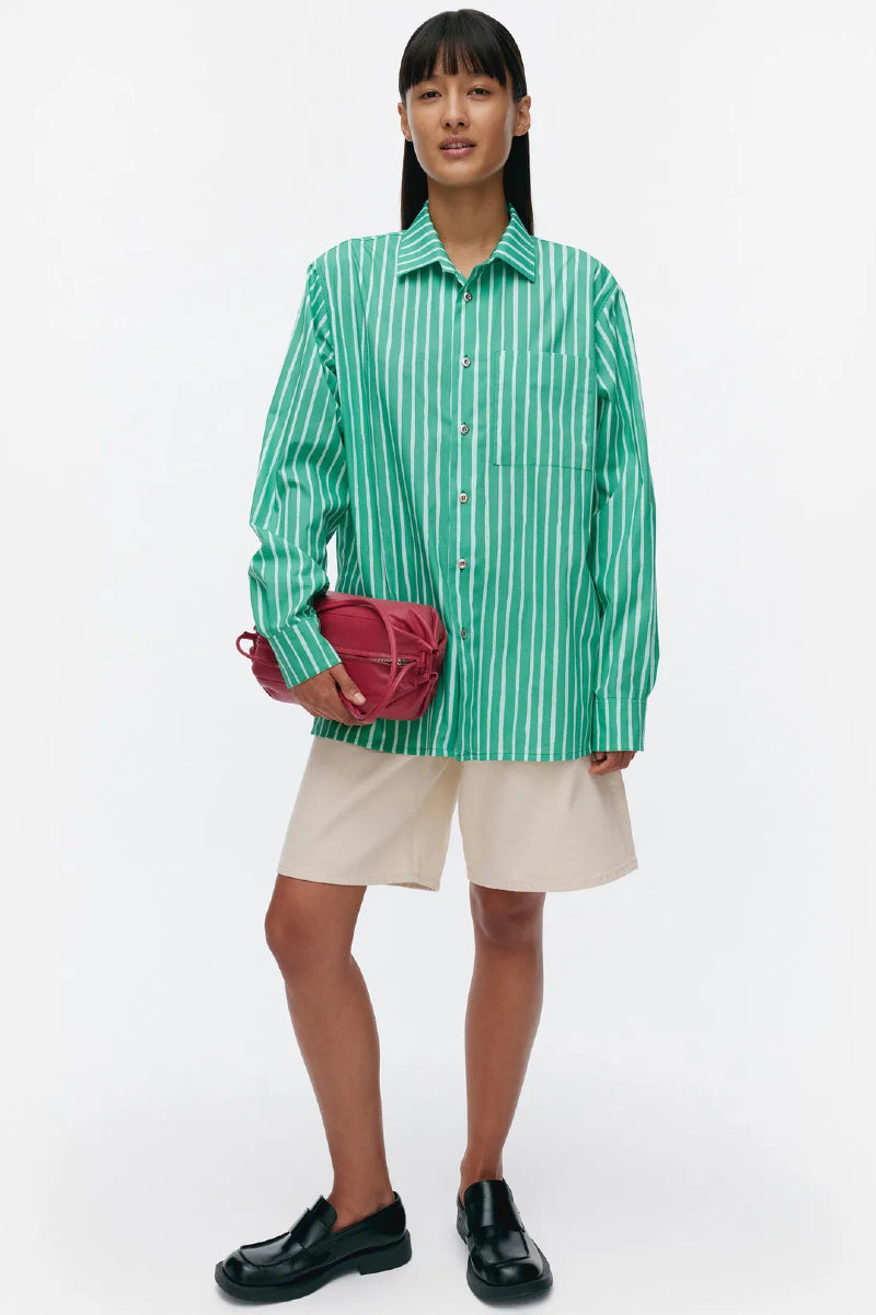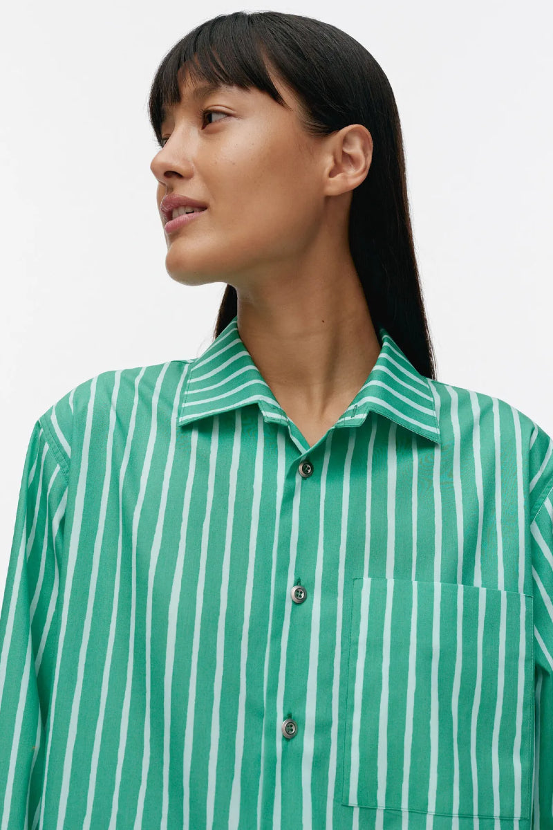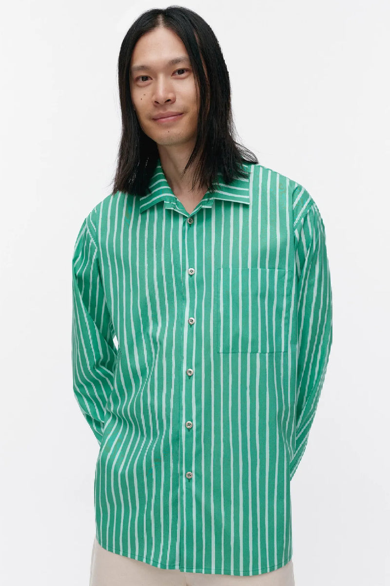 Jokapoika-paita on valmistettu luomupuuvillasta, ja siinä on rento istuvuus ja suora leikkaus. Piccolo-kuosinen paita on painettu Helsingissä. Paidassa on kaulukset, metallinappisuljenta ja rintatasku. Hihansuissa on mansetit, joissa on metallinapit.