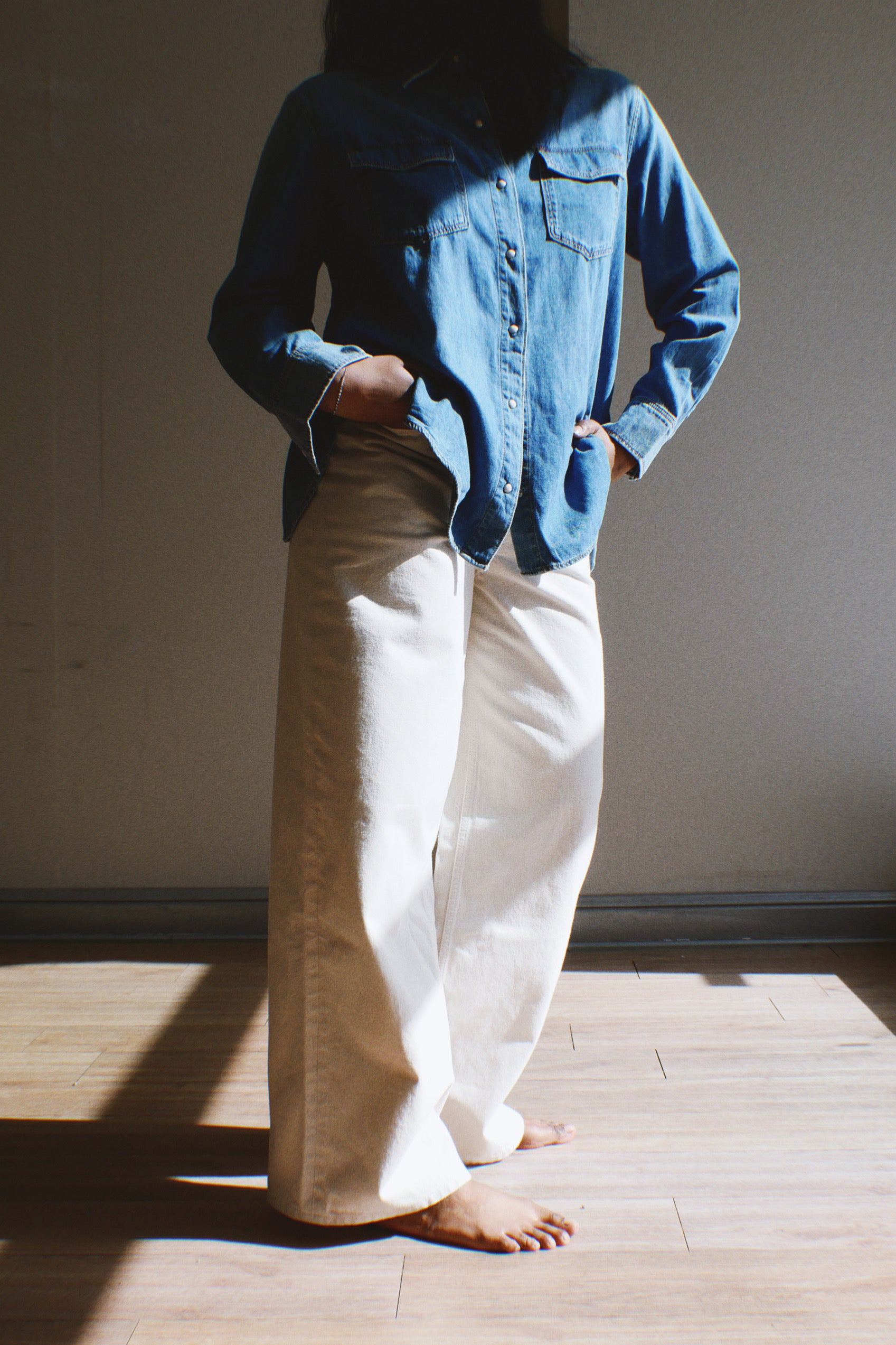 Jokapaikan farkuissa on normaali vyötärö ja rento istuvuus. Vajaamittaiset, nilkkaa kohti kapenevat lahkeet. Saatavilla sininen, syvän musta sekä ikoninen Unikko – yhteensopiva farkkupaita viimeistelee asun.