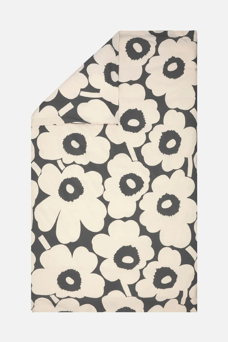 Marimekko Unikko Pussilakana 150x210cm - hiili/l.valkoinen