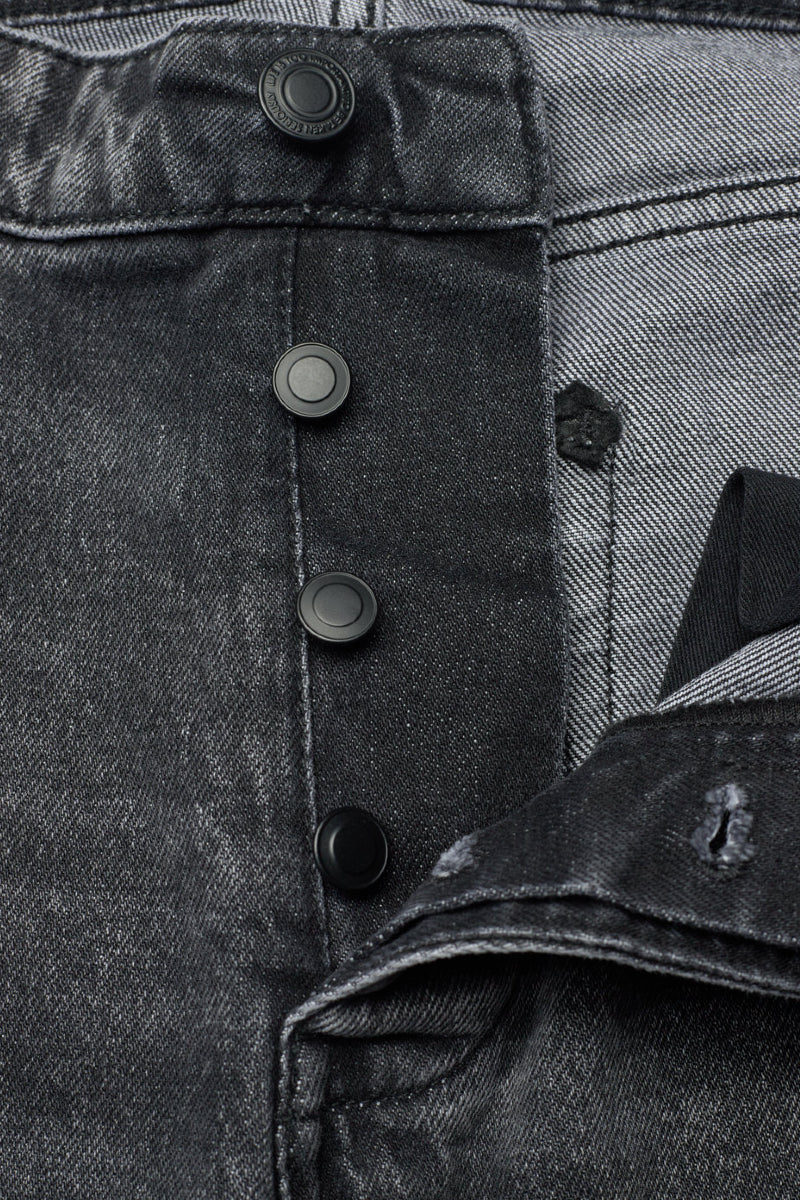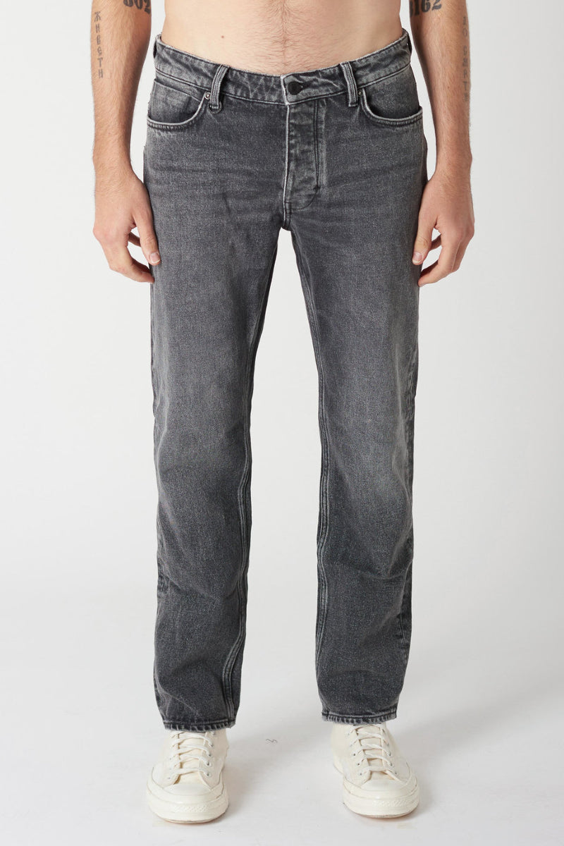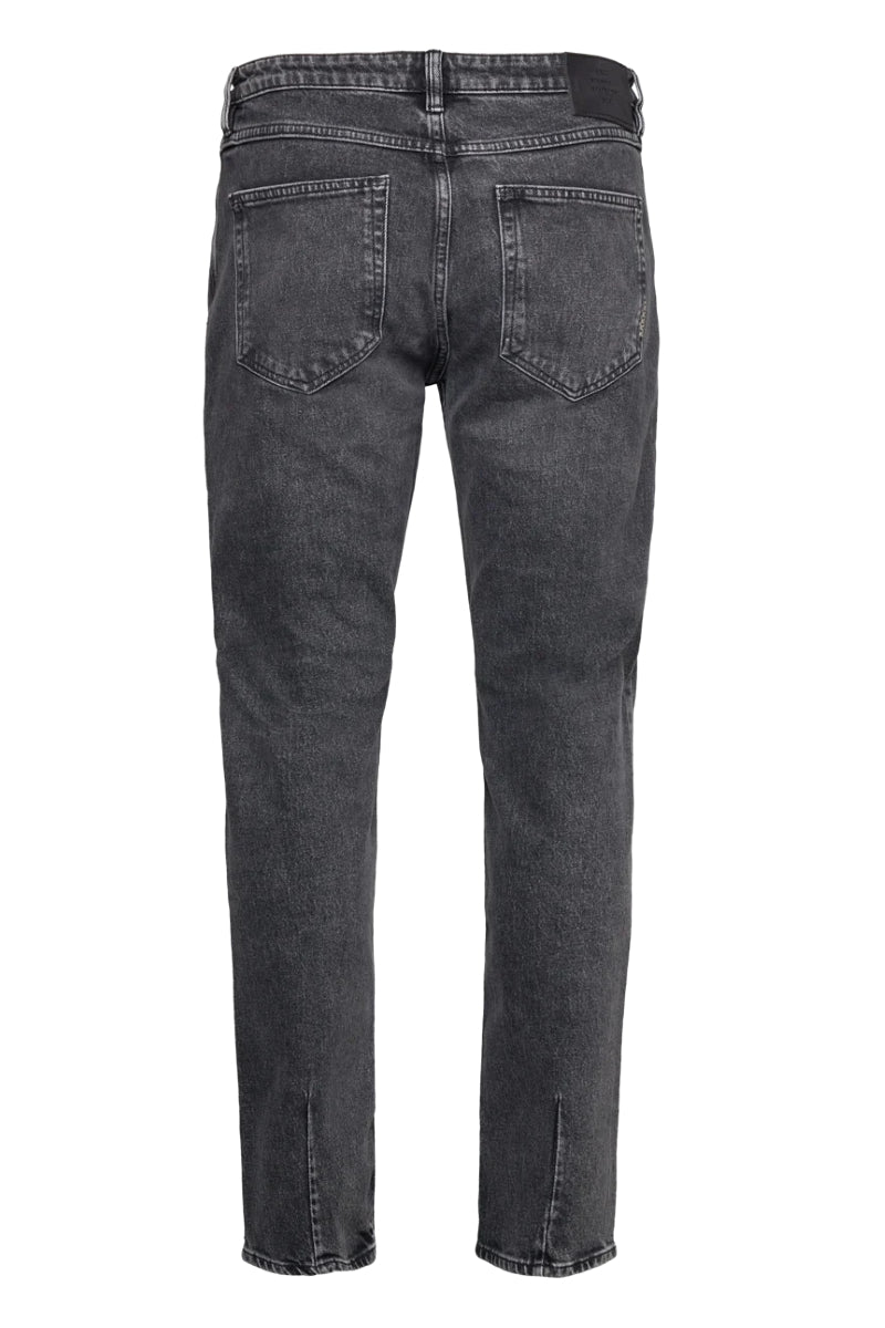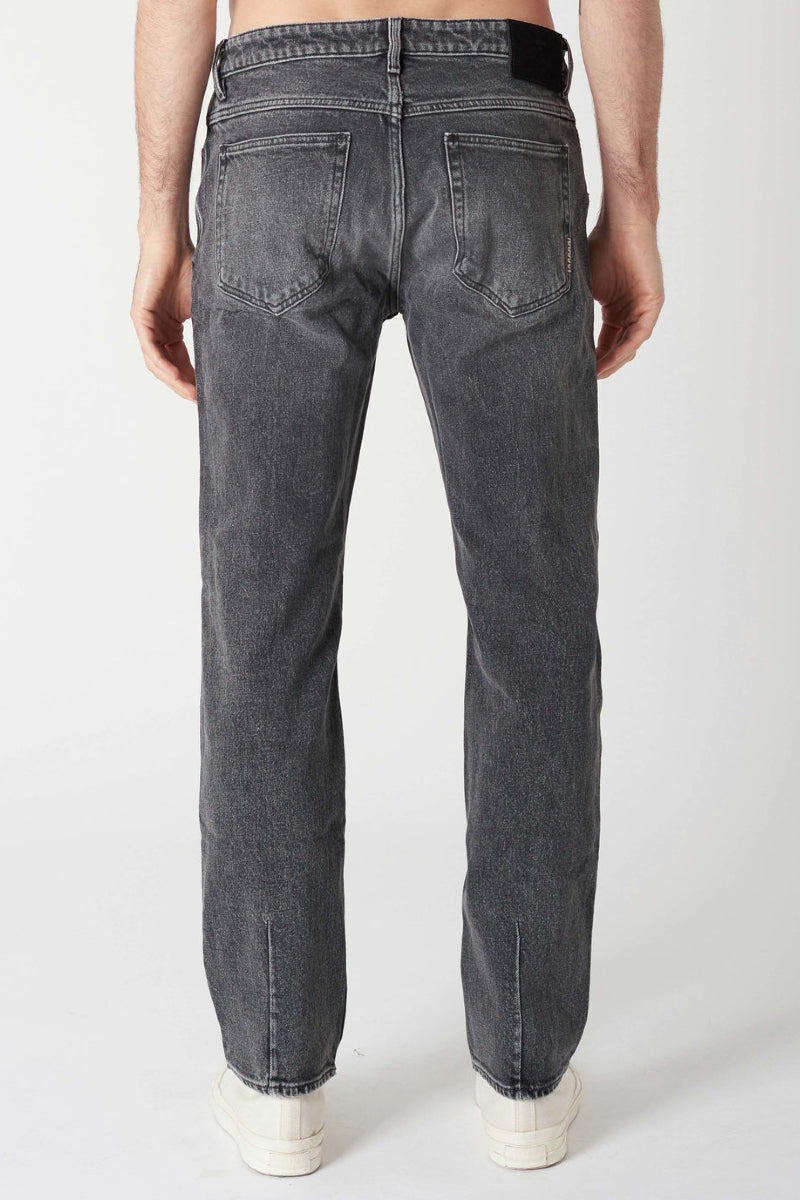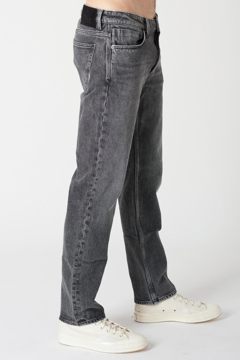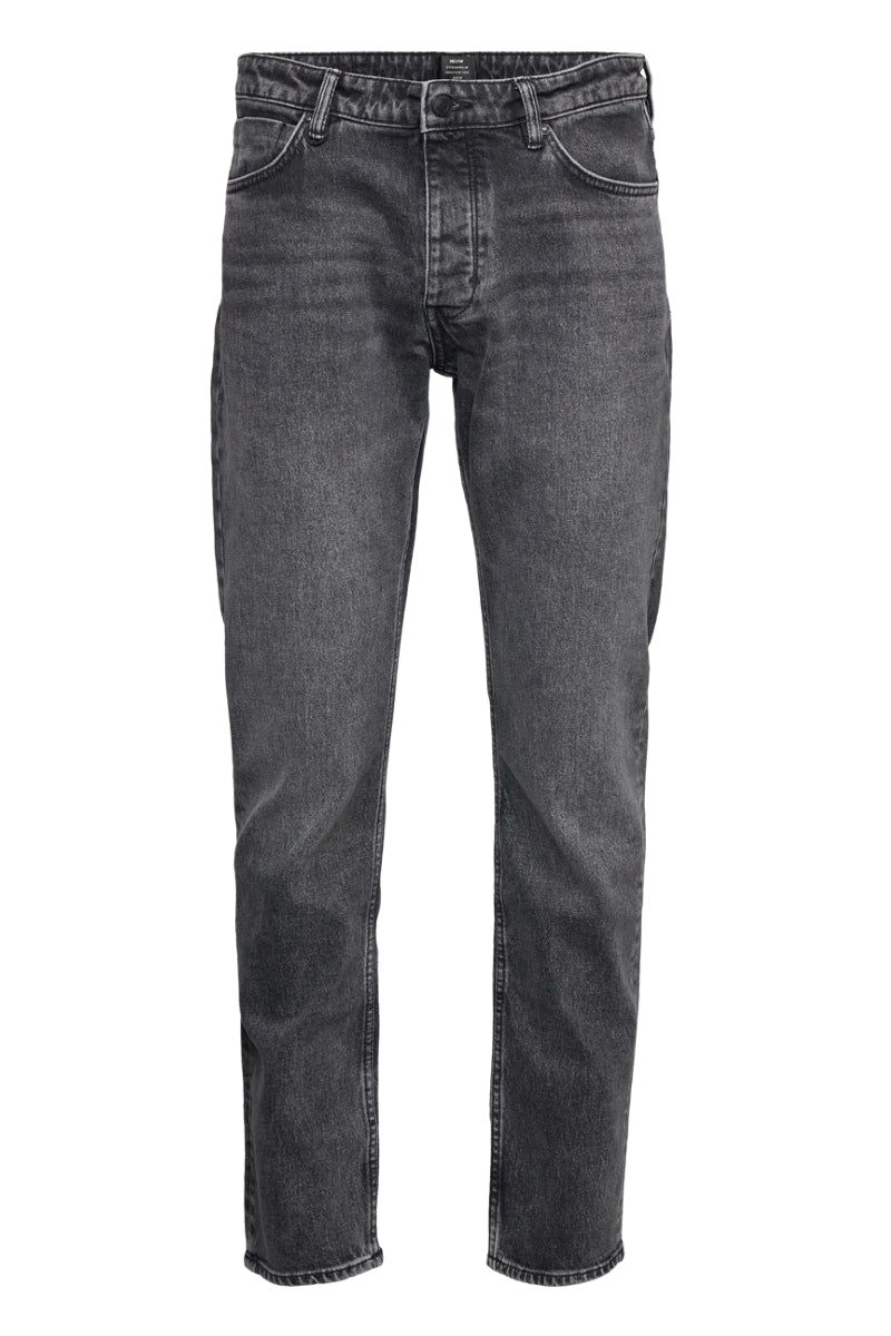 Rennot miesten farkut suoralla lahkeella tummanharmaassa pesussa. Malli on tilava vyötärön ja reisien kohdalta. Monikäyttöinen malli istuu monelle erilaiselle vartalotyypille ja sen materiaali joustaa hieman. Viimeistelty merkille ominaisilla yksityiskohdilla kuten metallirenkaalla vyölenkissä sekä tikkauksilla takataskussa ja lahkeissa.
