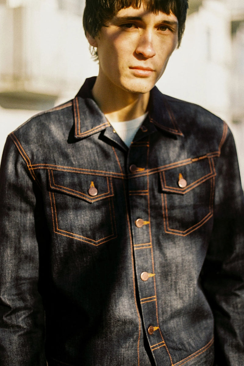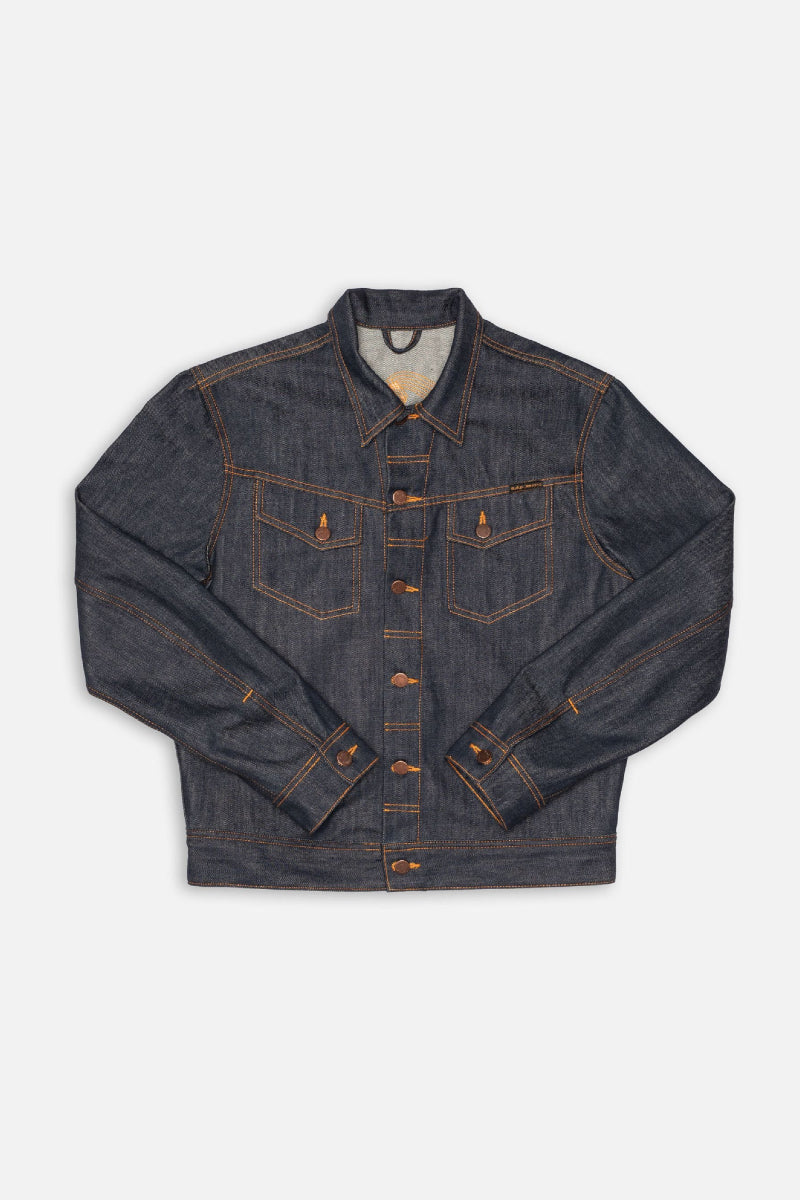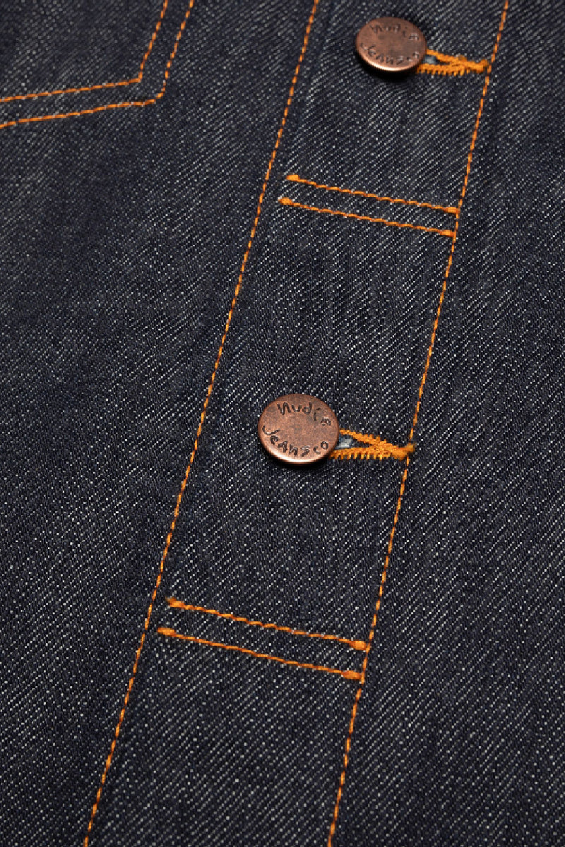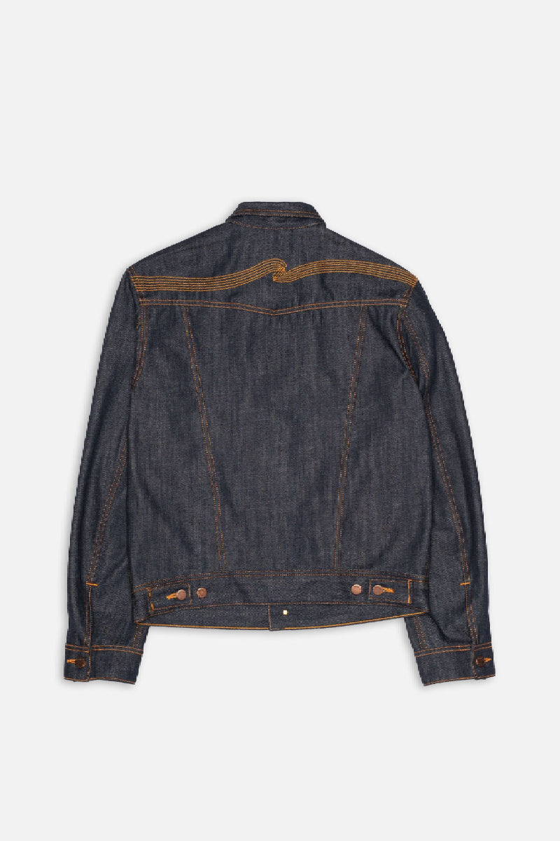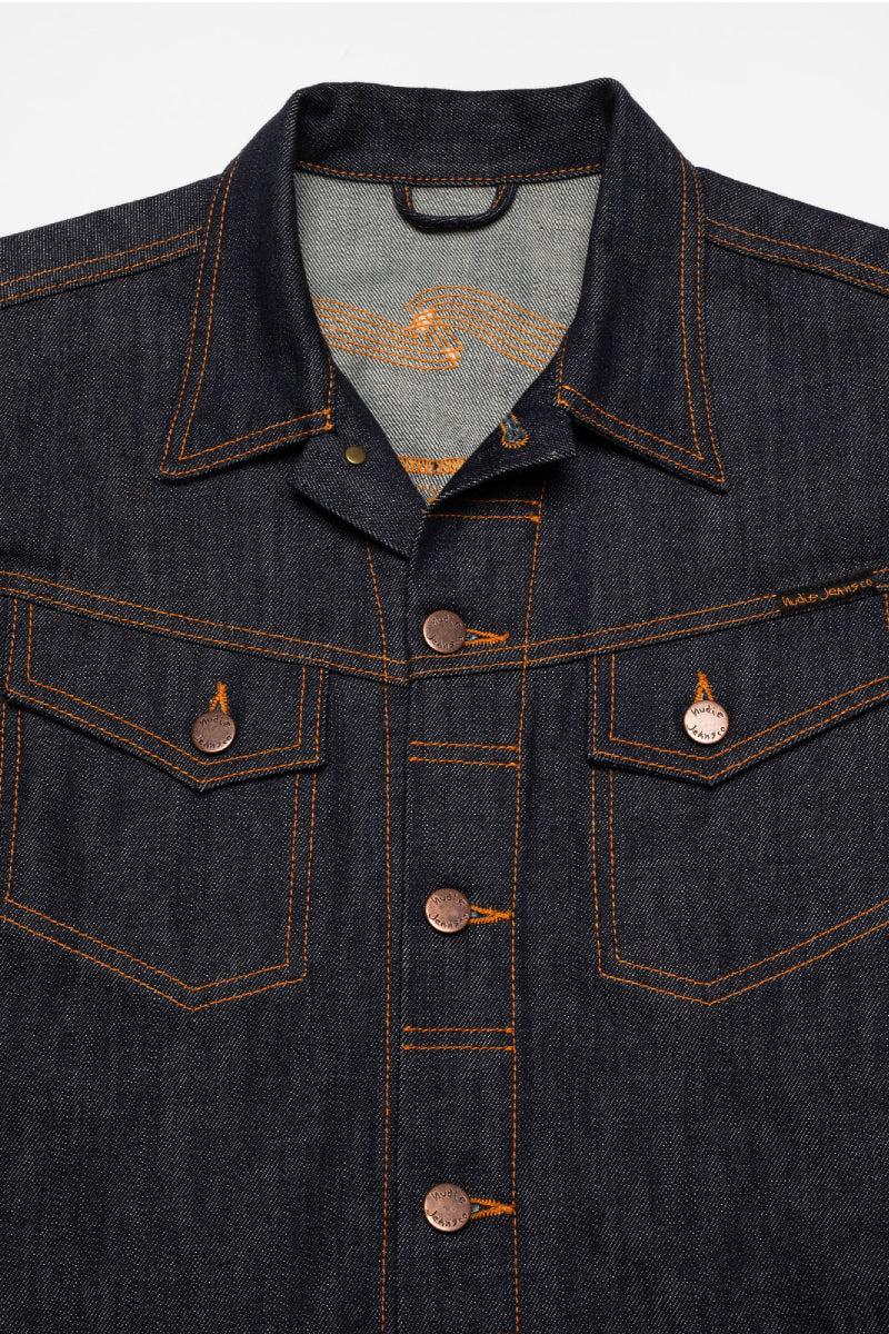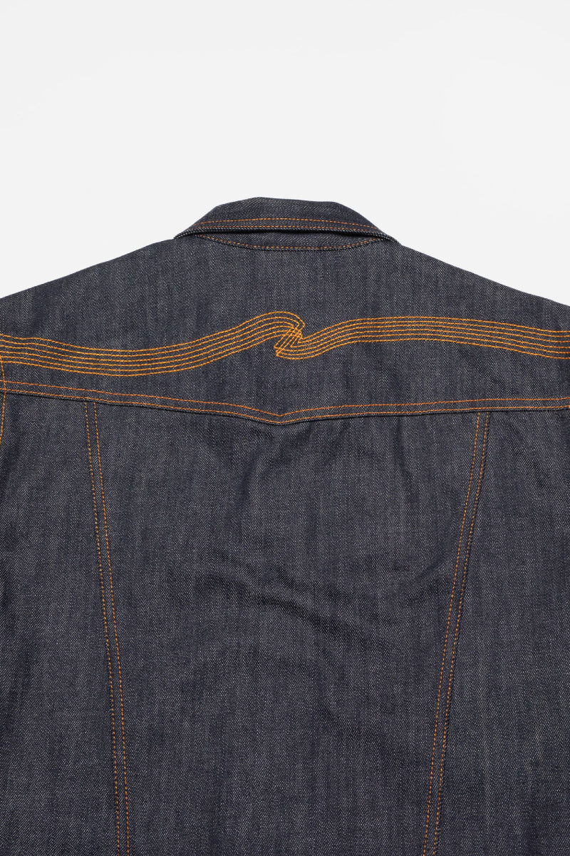 Conny on Nudie Jeansin ikoninen farkkutakki. Slim fit-malli, asymmetriset rintataskut ja brodeerattu aaltotikkaus tekevät siitä kadulla tunnistettavan klassikon. Ainutlaatuisesta 13,7 unssisesta dry denim -luomupuuvillasta valmistetussa takissa on upea eläväinen rakenne.