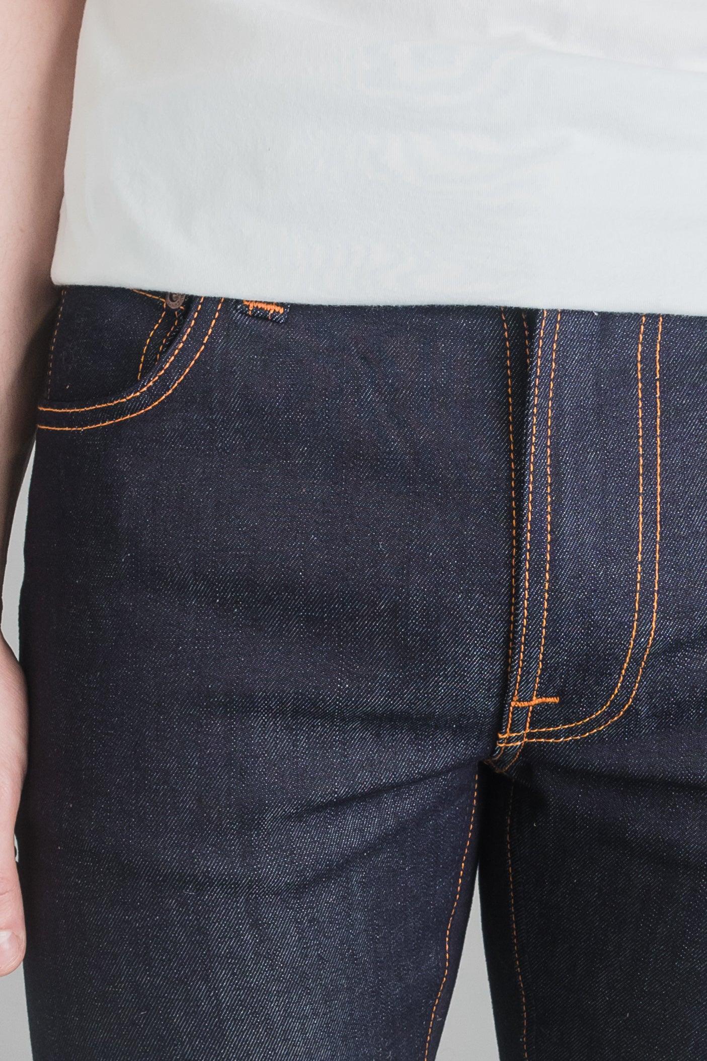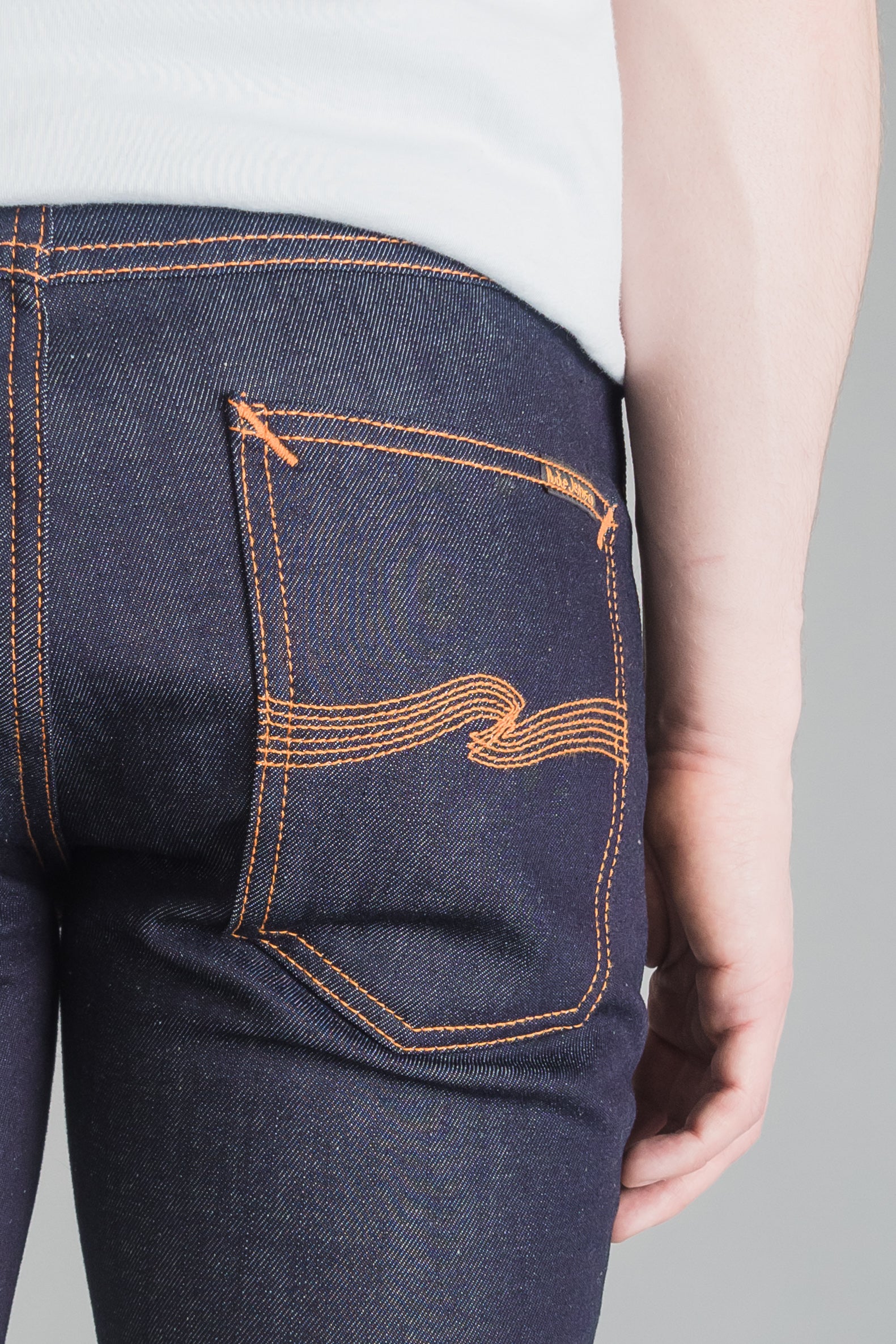 Ruotsalaisen Nudien luomupuuvillasta valmistetut miesten farkut. Slim tapered-fit malli kapenevilla lahkeensuilla. Mukava 11,5 unssinen comfort stretch denimkangas. Kangas on joustokuitujensa ansiosta heti mukava jalassa, mutta käyttäjä pääsee kuitenkin kuluttamaan housun itse yksilölliseksi, koska denimkankaaseen ei ole tehty valmista pesua. Tämä housu tarjoaa erinomaisen vastineen rahalle!