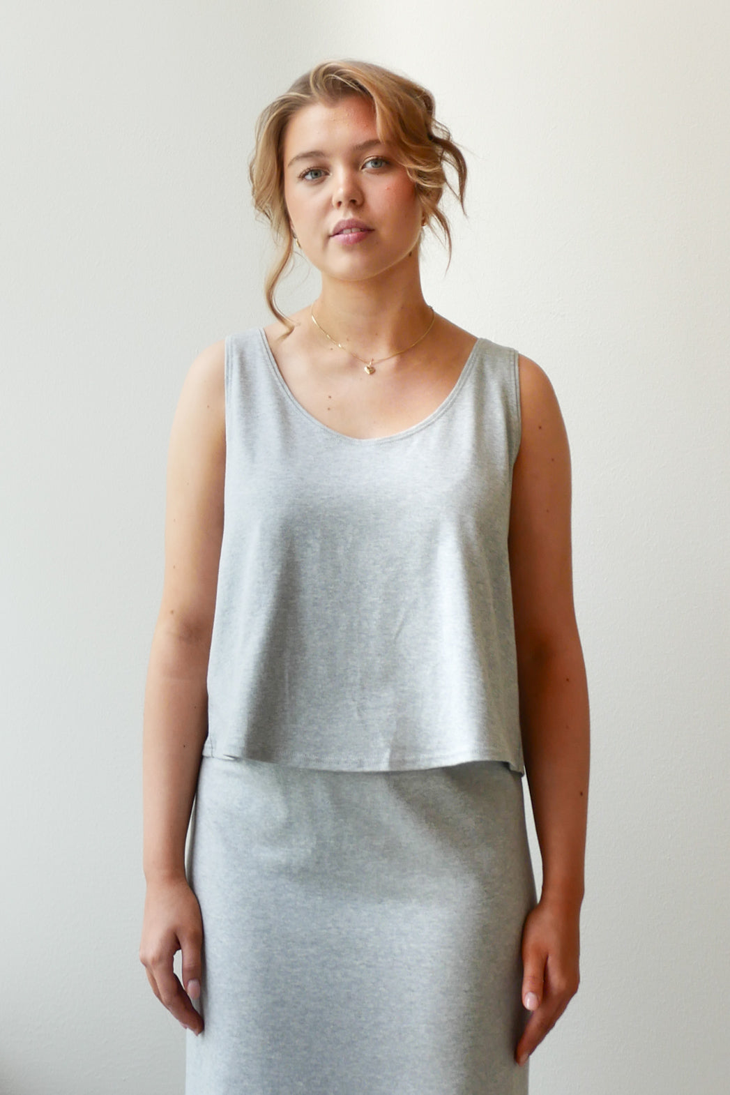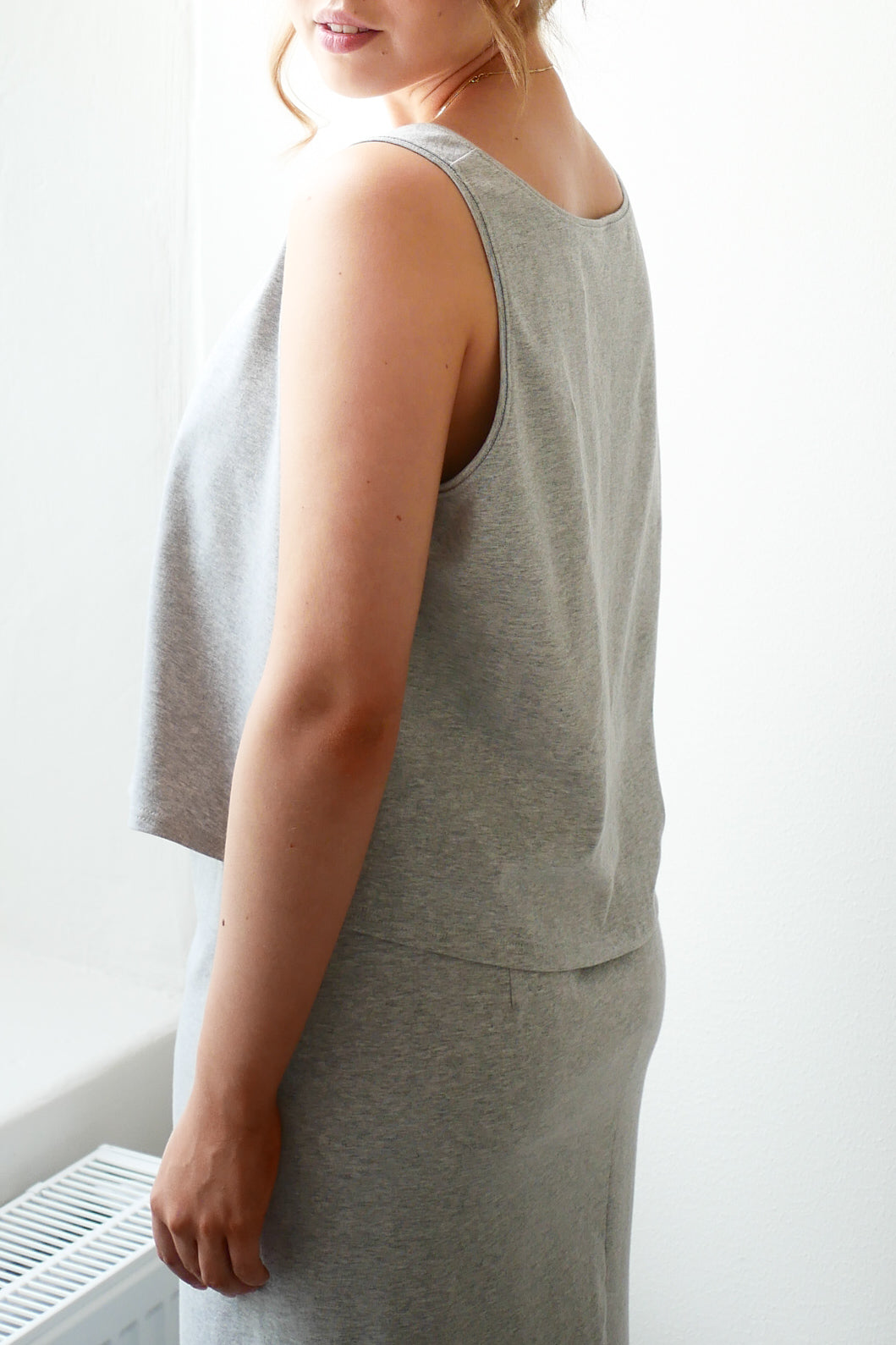 Minimalistinen ja siro toppi kesään. Väljästi laskeutuva malli kapeilla olkaimilla ja avaralla pääntiellä. Cropattu pituus laskeutuu täydellisesti sekä korkeavyötäröisten että matalavyötäröisten alaosien kanssa. Pehmeä premium-neulos tekee Saga-topista kesän huolettoman luottovaatteen, jota voi asustaa loputtomilla tavoilla.