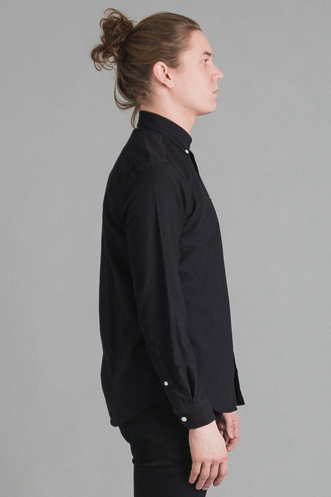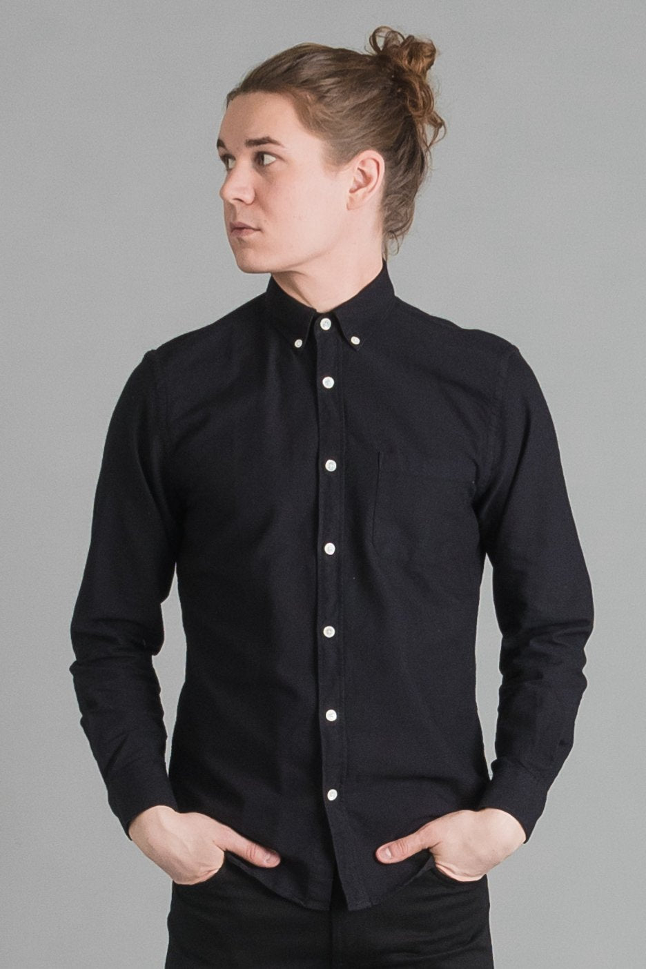 Tyylikäs ja ajaton miesten musta kauluspaita Portuguese Flannelilta. Materiaali sataprosenttista 'Oxford' -puuvillaa. Laadukkaat 'Mother of Pearl' -napit on valmistettu aidosta helmestä.