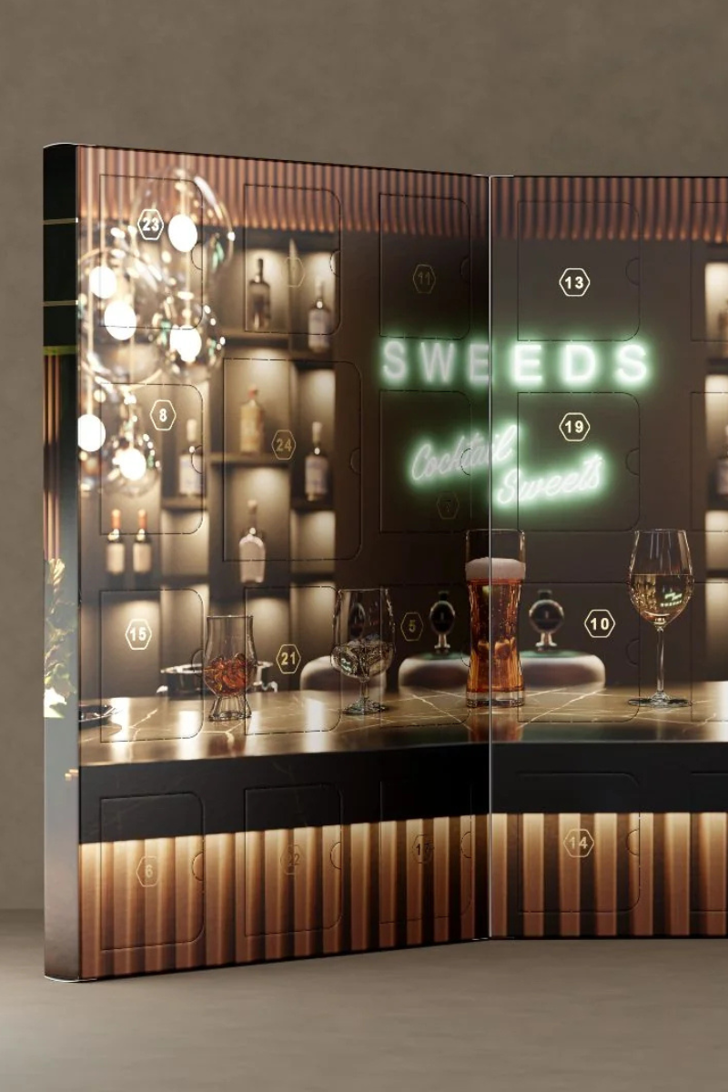 SWEEDS Christmas Calendar kätkee sisäänsä kaikki brändin suosikkimaut. Yhteensä 23 pientä näytepussia (3 kpl / 15 g) ja yksi suurempi makeinen aattoa varten (50 g). Jokainen päivä tuo uuden yllätyksen: Sparkling Wine, Sparkling Rosé, Whiskey, Gin, Pinot Noir, Aquavit, Beer, Rum, Limoncello ja Glögg.