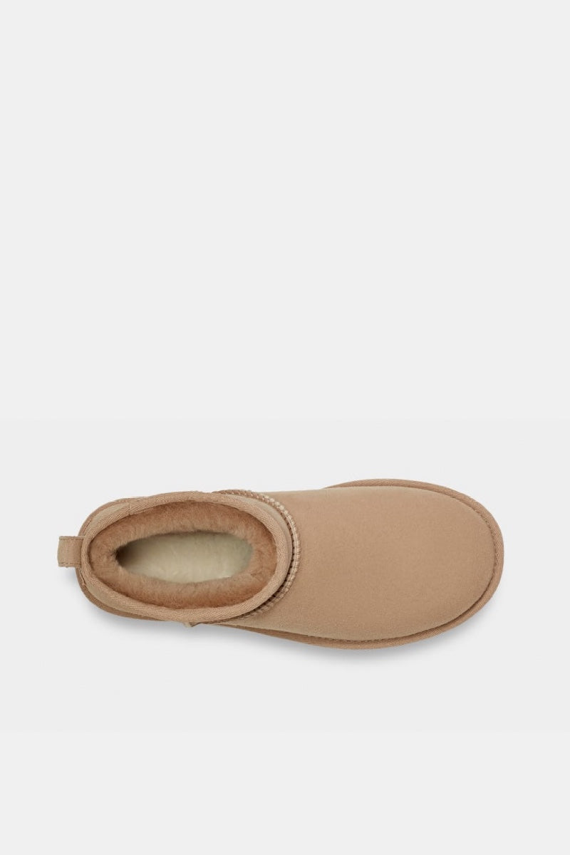 UGGin ikonisin siluetti päivitettynä pienemmällä varren korkeudella, mikä lisää helpon päälle pukemisen ja monipuolisuuden. Kengät on valmistettu vastuullisesti lampaannahasta ja -turkista ja siinä on ajaton muotoilu, juuri kuten alkuperäisessä UGGin klassikossa. Näissä monikäyttöisissä kengissä on kestävä ja erittäin kevyt pohja hyvällä iskunvaimennuksella ja pidolla.