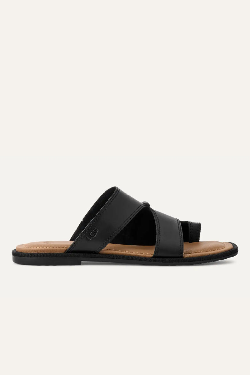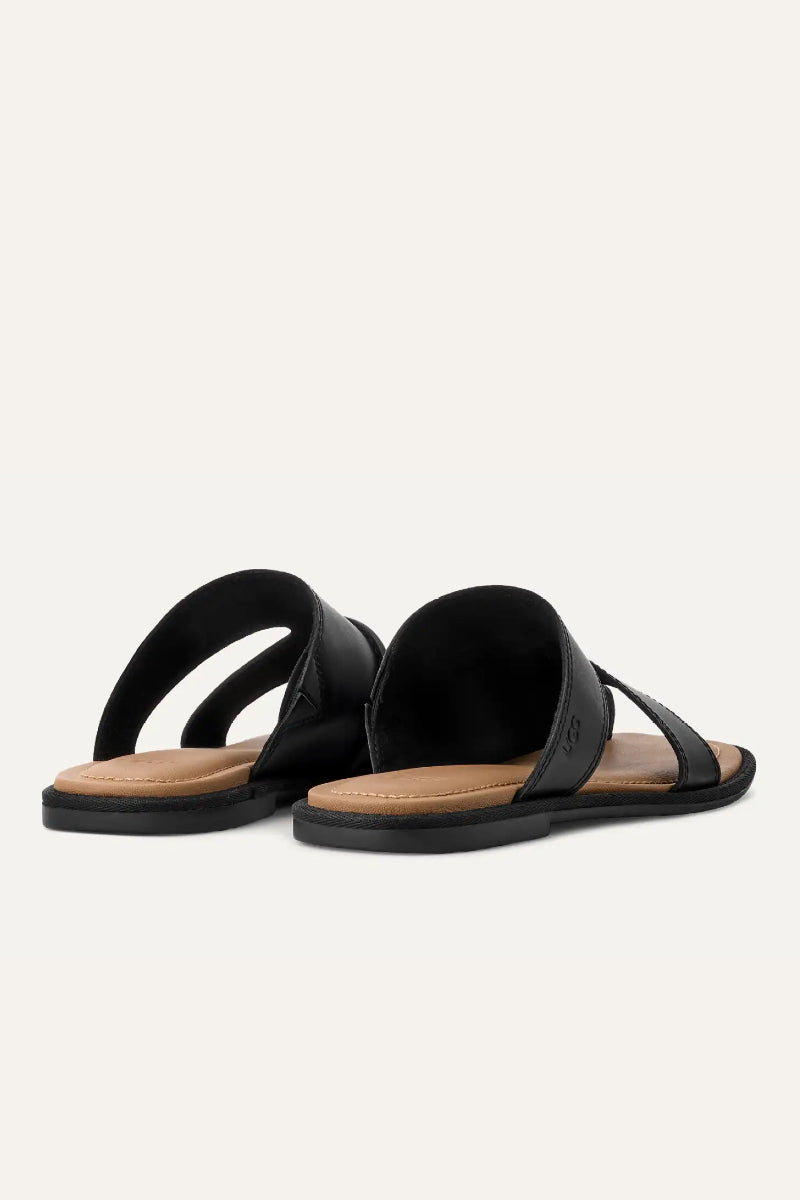Upeat sandaalit joissa rennon tyylikäs ja ajaton muotoilu. Pehmeästä nahasta valmistetut leveät remmit tarjoavat hyvän tuen ja istuvuuden jalkaan. Jalan alla on pehmustettu nahkainen sisäpohjan joka lisää käyttömukavuutta ja sivussa painettu UGG-logo viimeistelee tyylikkään ilmeen. Tuote on täydellinen valinta kesän asukokonaisuuksiin.