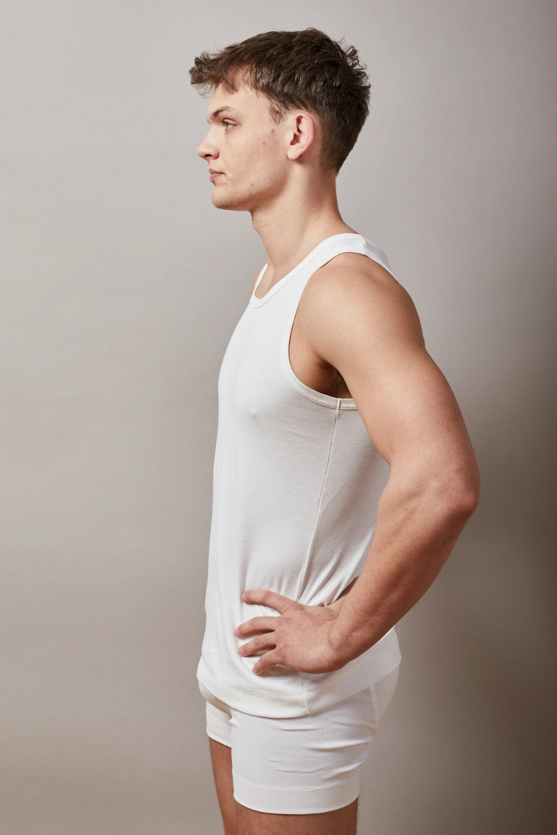 Tanskalaisen Victory Essentialssin korkealaatuinen tank top / aluspaita on valmistettu pitkäkuituisesta luomupuuvillasta. Malli mukailee sopivan napakasti istuvaa 1940-luvun fittiä ja paksu 1x1 ribbi-neulos tuntuu ylelliseltä päällä.