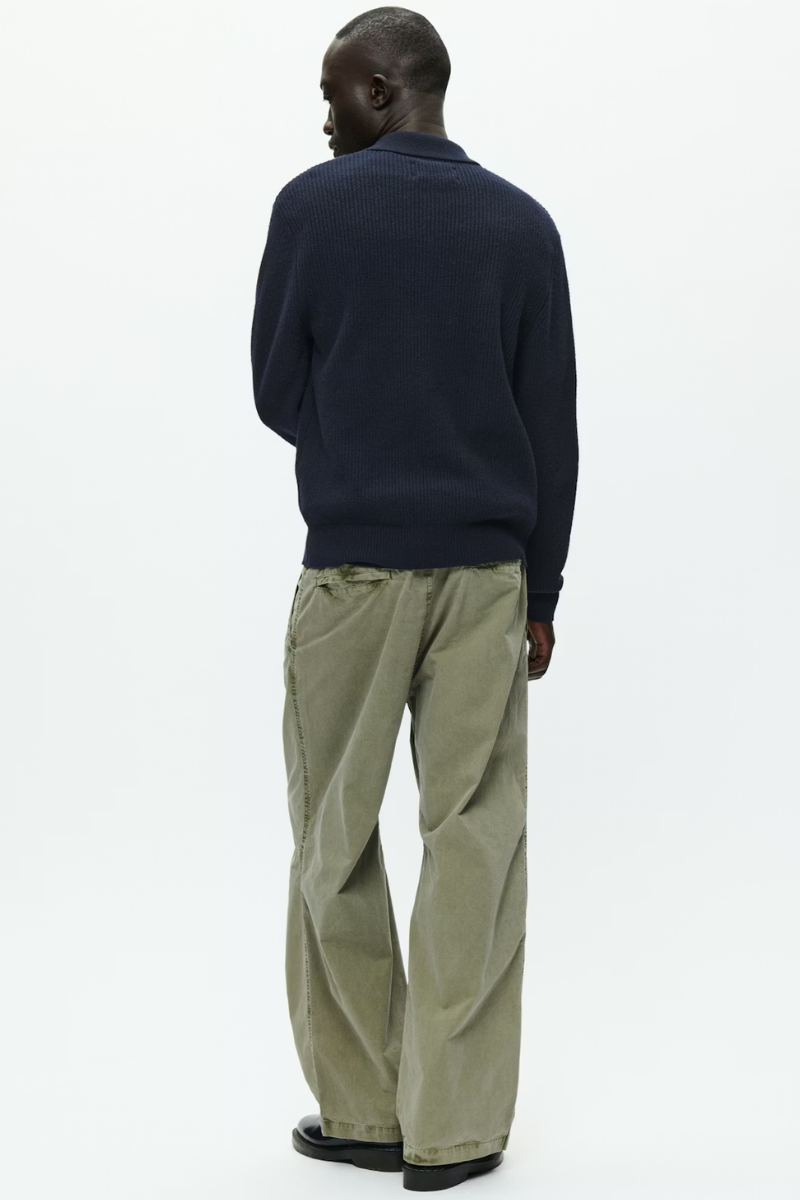 Neulottu poolopaita, jossa on suora istuvuus, hienovaraisesti strukturoidut ribbineulokset ja klassinen kaulus. Viimeistelty napillisella etulistalla ja pitkillä hihoilla. Huoliteltu, mutta rento neule sopii yhdisteltäväksi farkkujen tai suorien housujen kanssa.